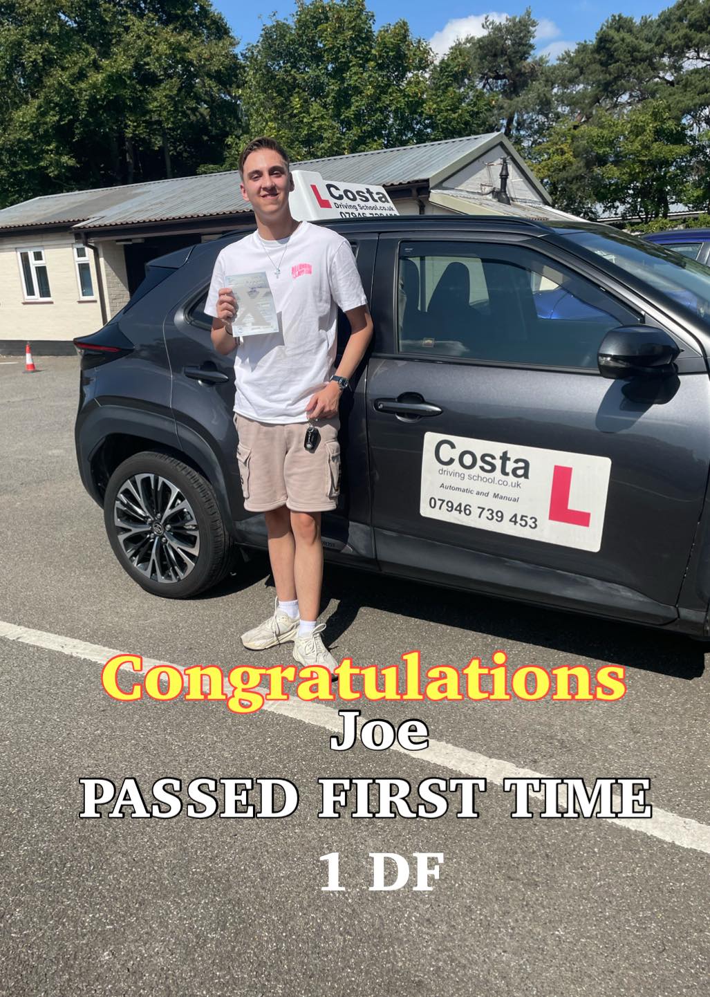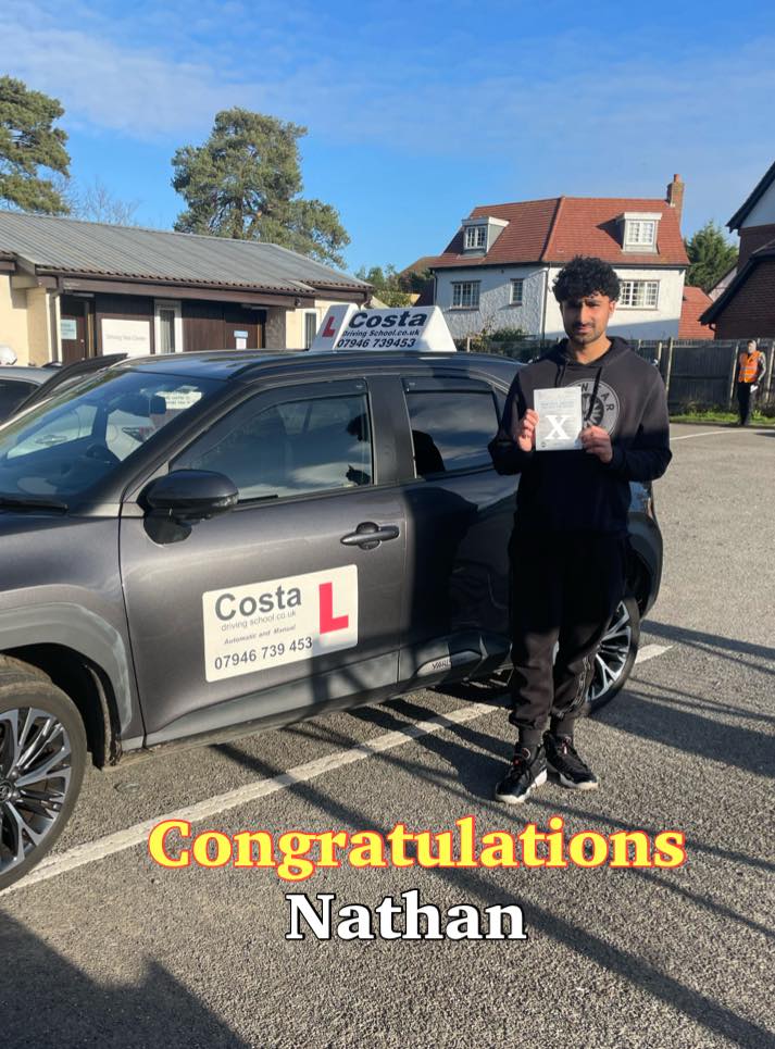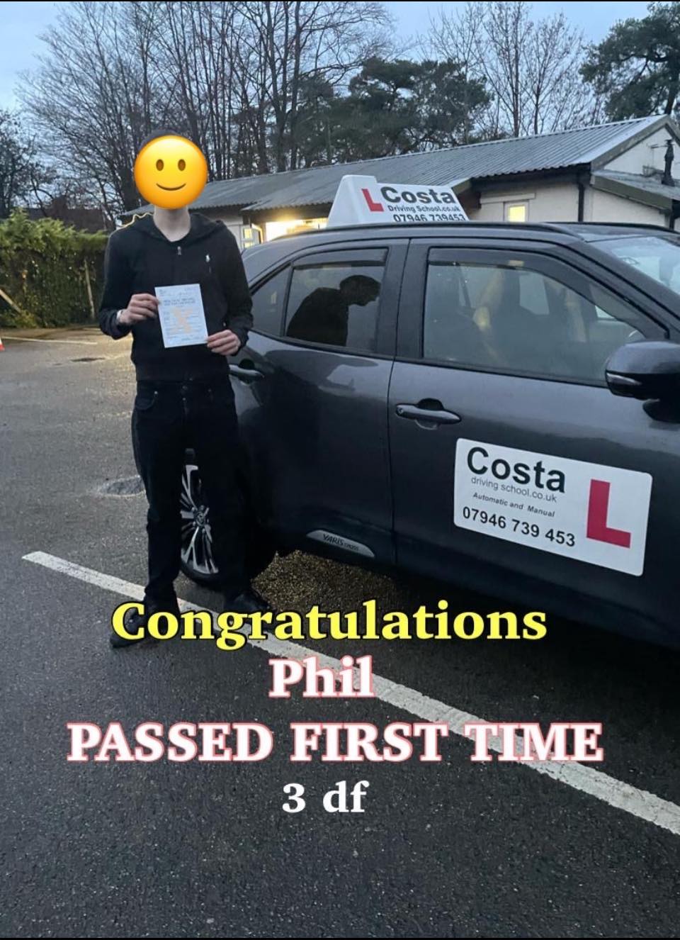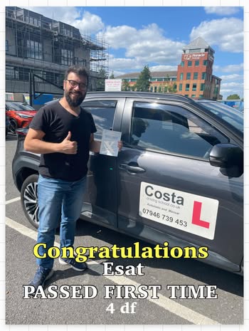 I PASSED FIRST TIME today with Costa. Costa was an absolute pleasure to learn with, he's patient and kind. I'll recommend Costa to everyone. I will miss the laughs we had every lesson.