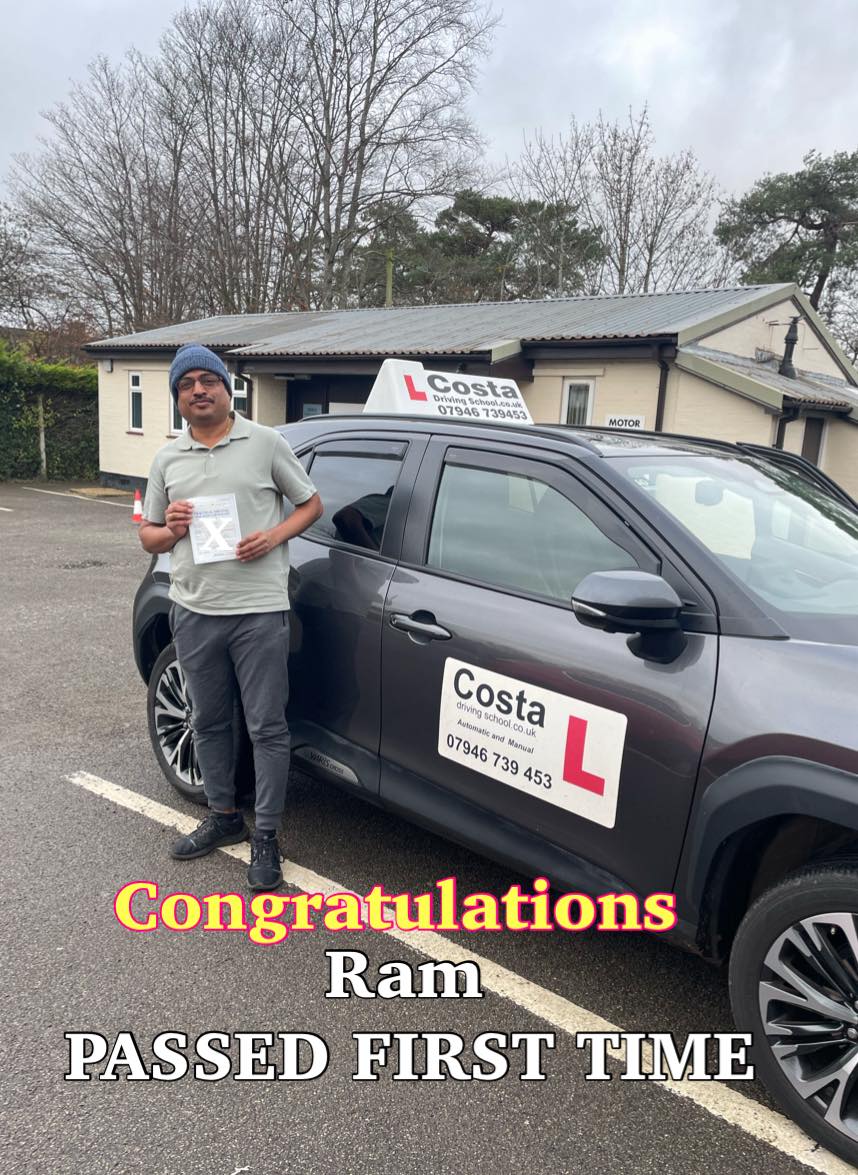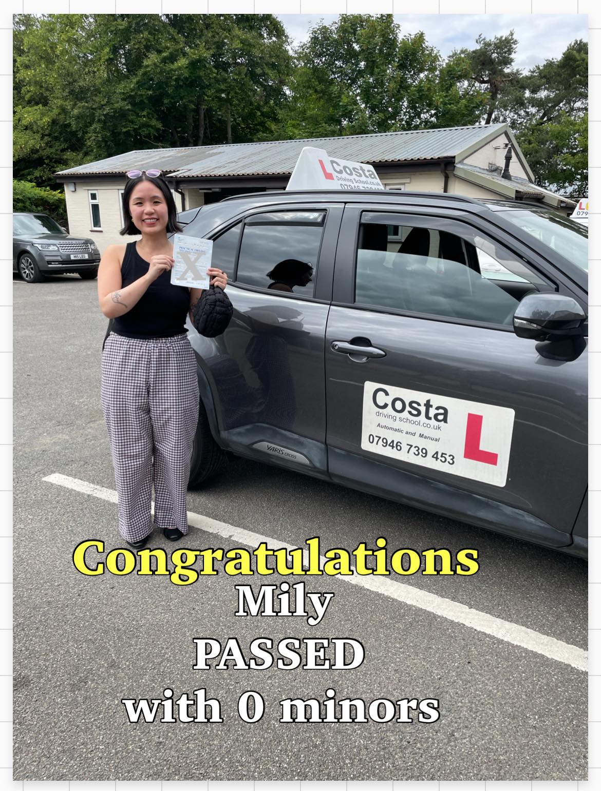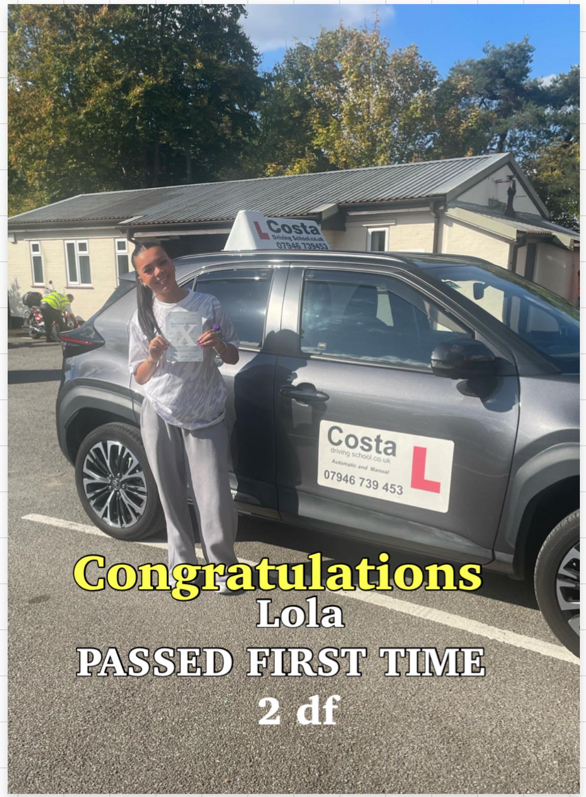 I PASSED FIRST TIME today with Costa. Costa was an absolute pleasure to learn with, he's patient and kind. I'll recommend Costa to everyone. I will miss the laughs we had every lesson.